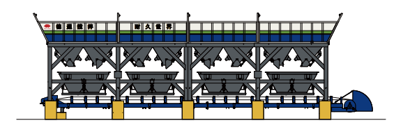 ● 配料斗采用有 2+2+1 或 2+3 等多種模塊化結(jié)構(gòu),各模塊廠內(nèi)完全組裝,現(xiàn)場(chǎng)直接安裝。